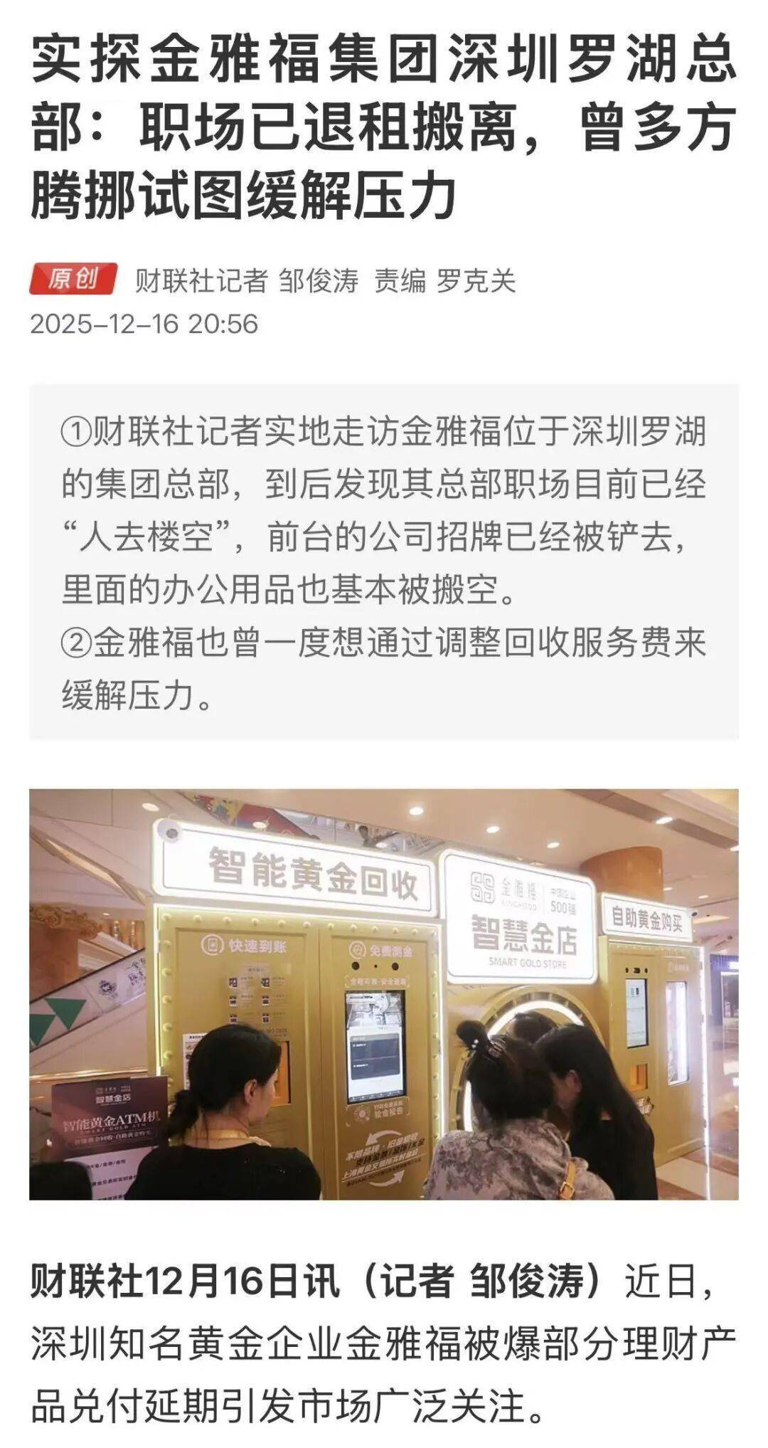 深圳知名黄金企业金雅福被爆部分理财产品兑付延期引发市场广泛关注。